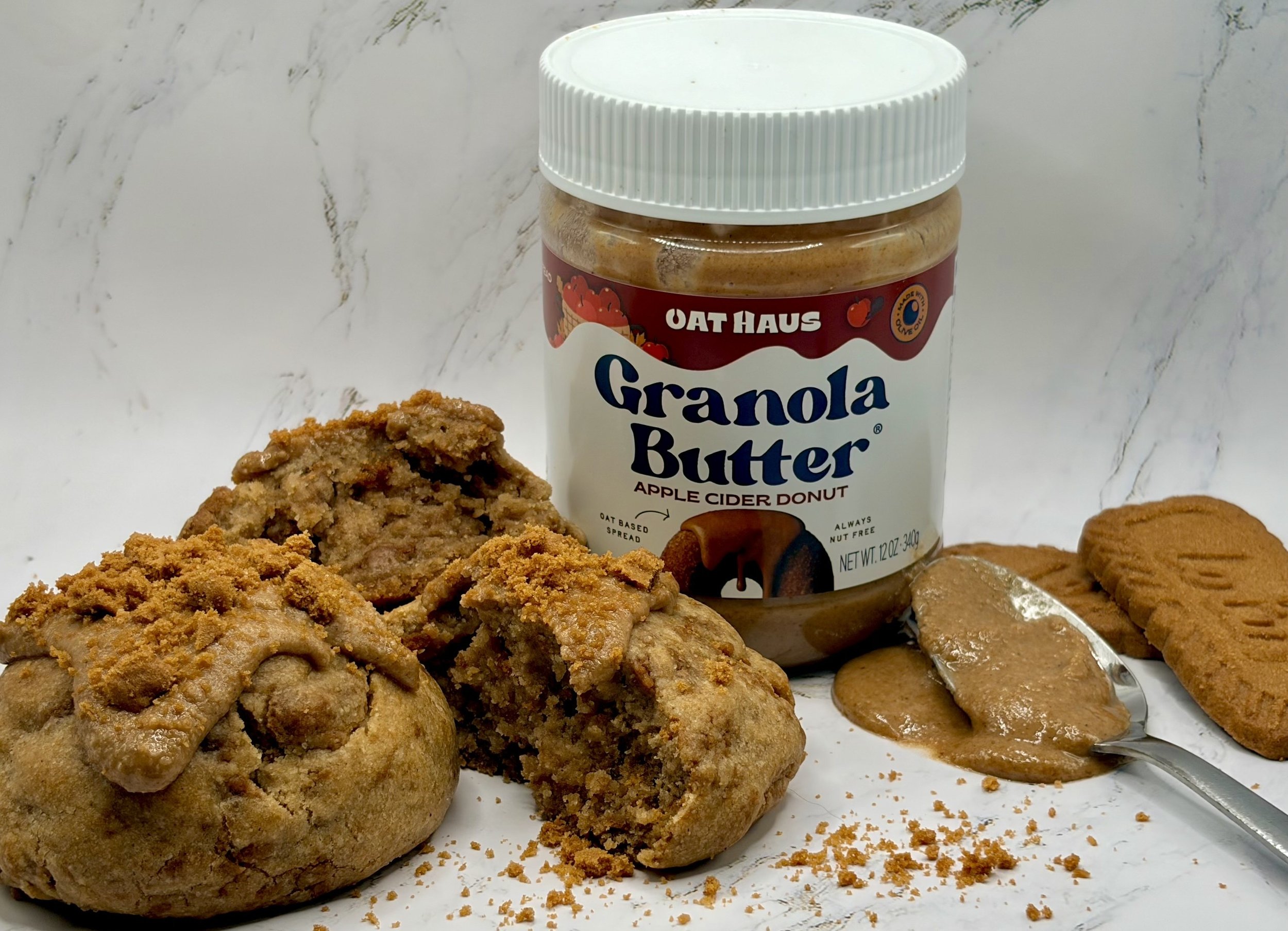 A mixture of Oat Haus Apple Cider Oat Butter, apple butter, apple sauce, & deliciously crunchy Biscoff cookie pieces for an added crunch. Perfect for fall & so good it’s hard to believe it’s vegan!